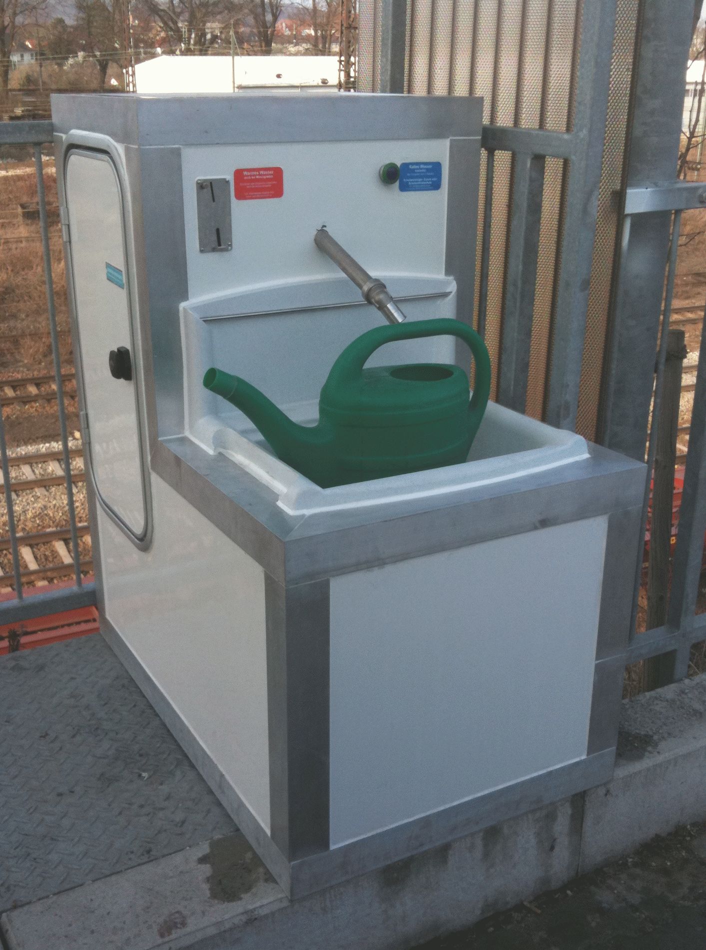 Das können Sie jetzt in unserem SB-Bereich mittels kaltem und warmen Wassers an unserem selbst entwickelten Außenwaschbecken mühelos in den Griff bekommen.