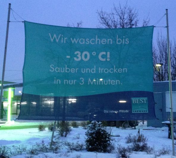 Wir sind die einzige Waschstraße in weiter Umgebung, die ohne Probleme im Winter bis -30° C Autos waschen kann. Sie müssen also auch bei extrem niedrigen Temperaturen nicht auf ein sauberes Auto verzichten.
