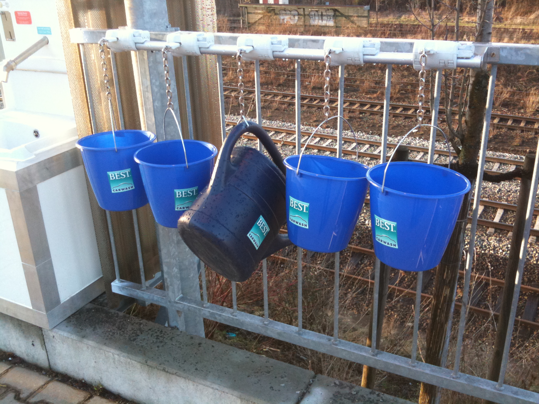 Gießkanne und Eimer können Sie sich mittels Pfand ausleihen. Einfach eine 2,- €-Münze in die Pfandbox einlegen und schon kann es los gehen, mit Ihrer Innenraum-Reinigung.