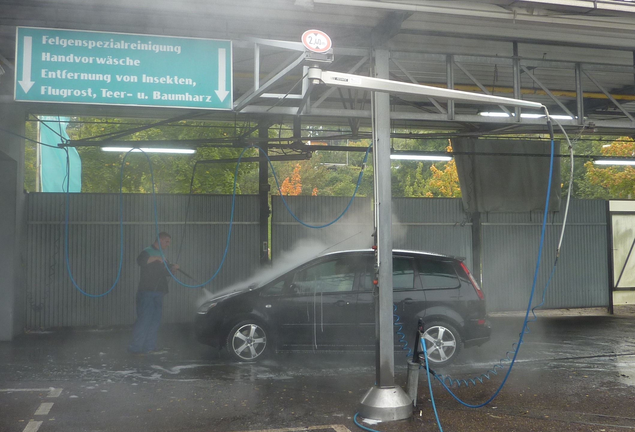 Bei der Fahrt durch den Vorsprühbogen wird Ihr Fahrzeug mit noch mehr und noch intensiverem Schaum für die Reinigung in der Waschstraße vorbereitet.